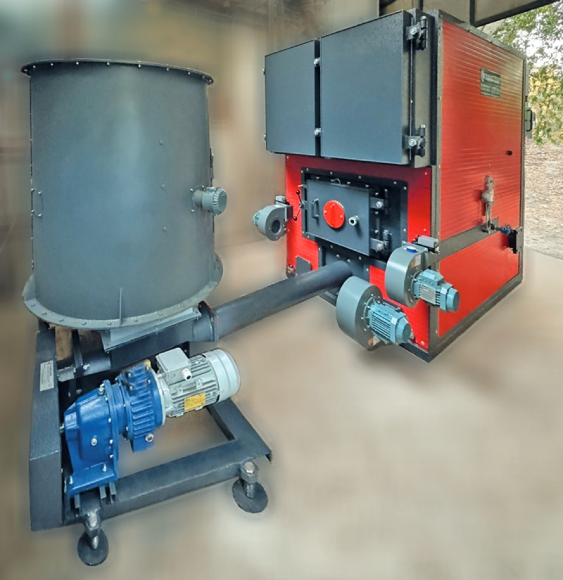 La struttura della caldaia è realizzata in acciaio ad alta resistenza, mentre la camera di combustione è rivestita con materiale refrattario di alta qualità, per garantire affidabilità e durata. Il bruciatore in ghisa con focolare meccanico è alimentato da una tramoggia cilindrica dotata di agitatore, che assicura una distribuzione continua del combustibile. La coclea a velocità variabile regola con precisione il flusso verso il bruciatore, ottimizzando la combustione.